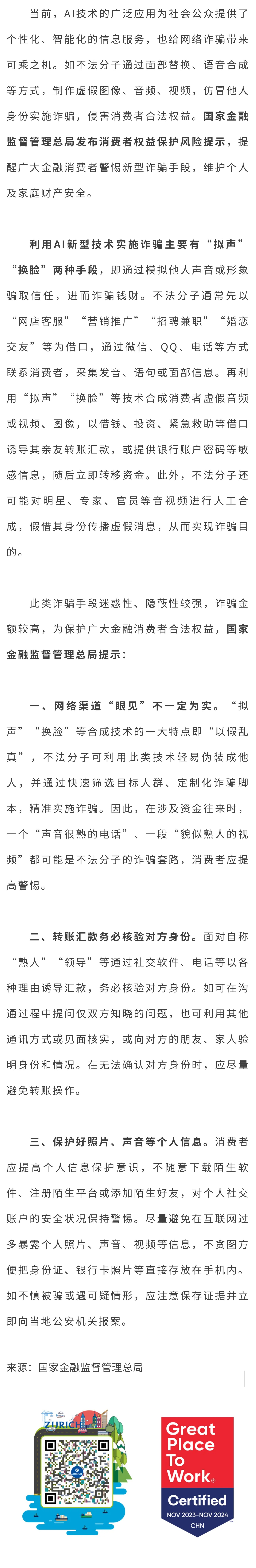 关于警惕利用AI新型技术实施诈骗的风险提示