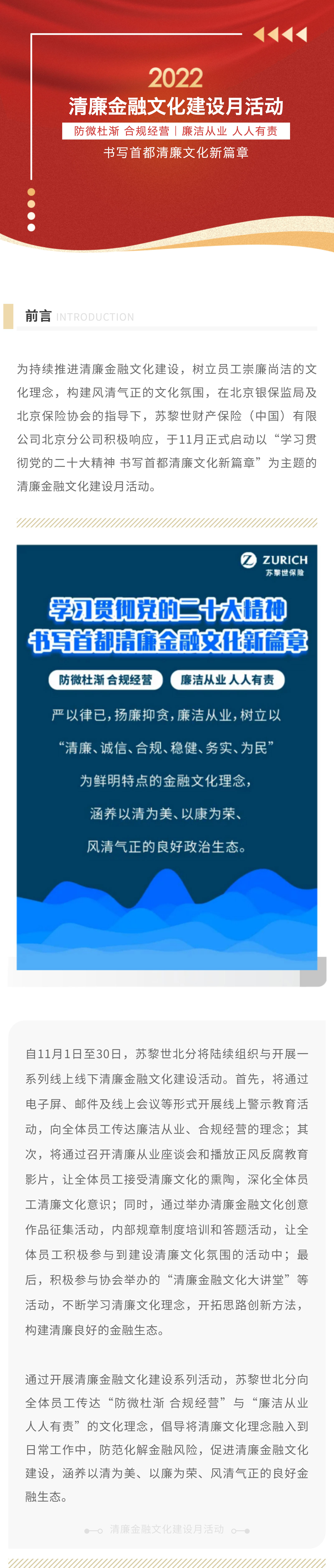 苏黎世财产保险(中国)有限公司北京分公司 开展清廉金融文化建设月活动