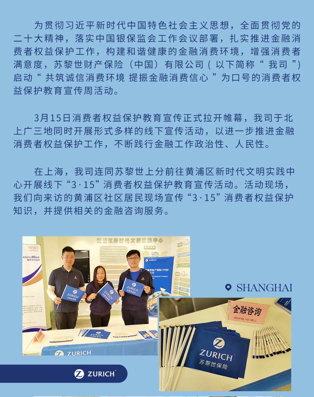 苏黎世中国积极落实“3·15”消费者权益保护教育宣传工作