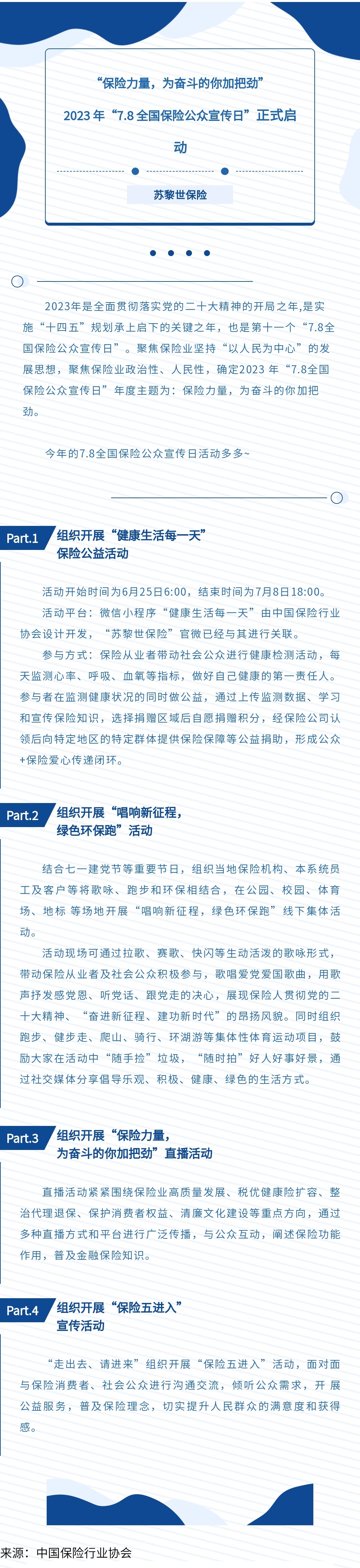 “保险力量,为奋斗的你加把劲” 2023 年“7.8 全国保险公众宣传日”正式启动