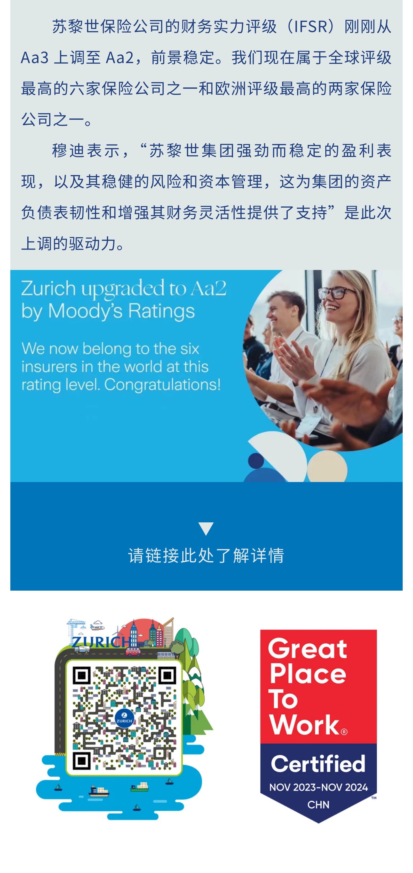 穆迪评级已将苏黎世保险公司(ZIC)的评级从Aa3上调至Aa2