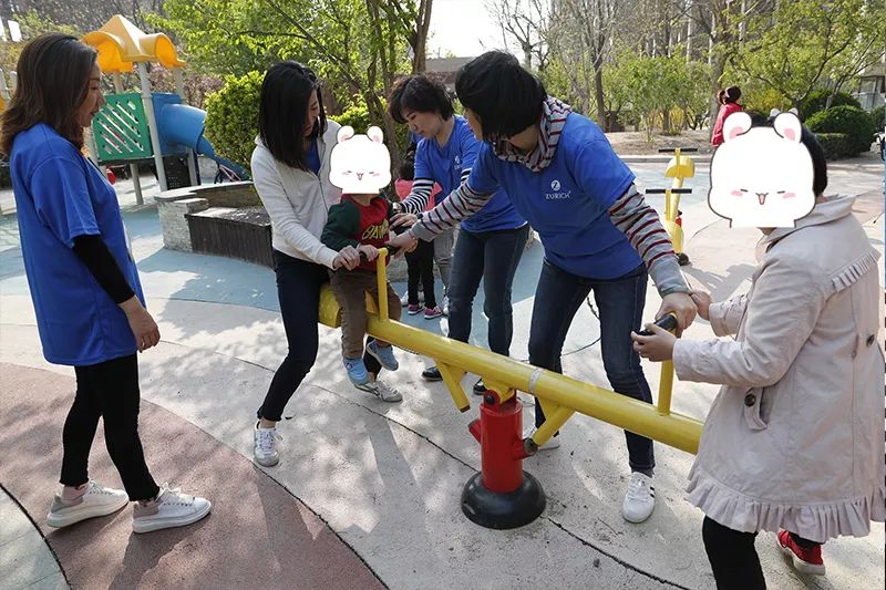 擦完玻璃后,志愿者们还陪着小朋友去晒太阳和散步。孩子们因为视力的问题, 无法像别的小朋友一样看清道路,全程需要有人牵引。志愿者们牵着他们的小手,耐心的提示着,前面有台阶,要抬脚,要下坡喽, 慢一点。孩子们从最初的生疏到后面慢慢的与人熟络起来。在小区游乐场,志愿者们带小朋友们一起玩跷跷板、骑木马。孩子们玩的很开心,绽放的笑容如午后的阳光般灿烂。